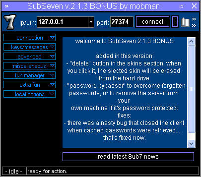 20여년 전 유명했던 백도어 프로그램 sub7 트로잔 소스코드입니다.